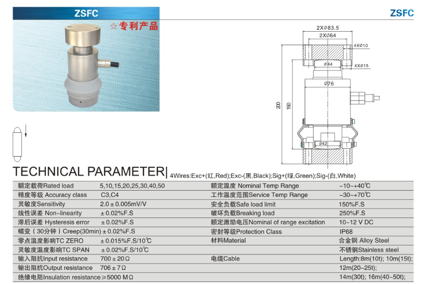 產(chǎn)品系列:ZSFC型稱重傳感器ubI廣州南創(chuàng)電子科技有限公司