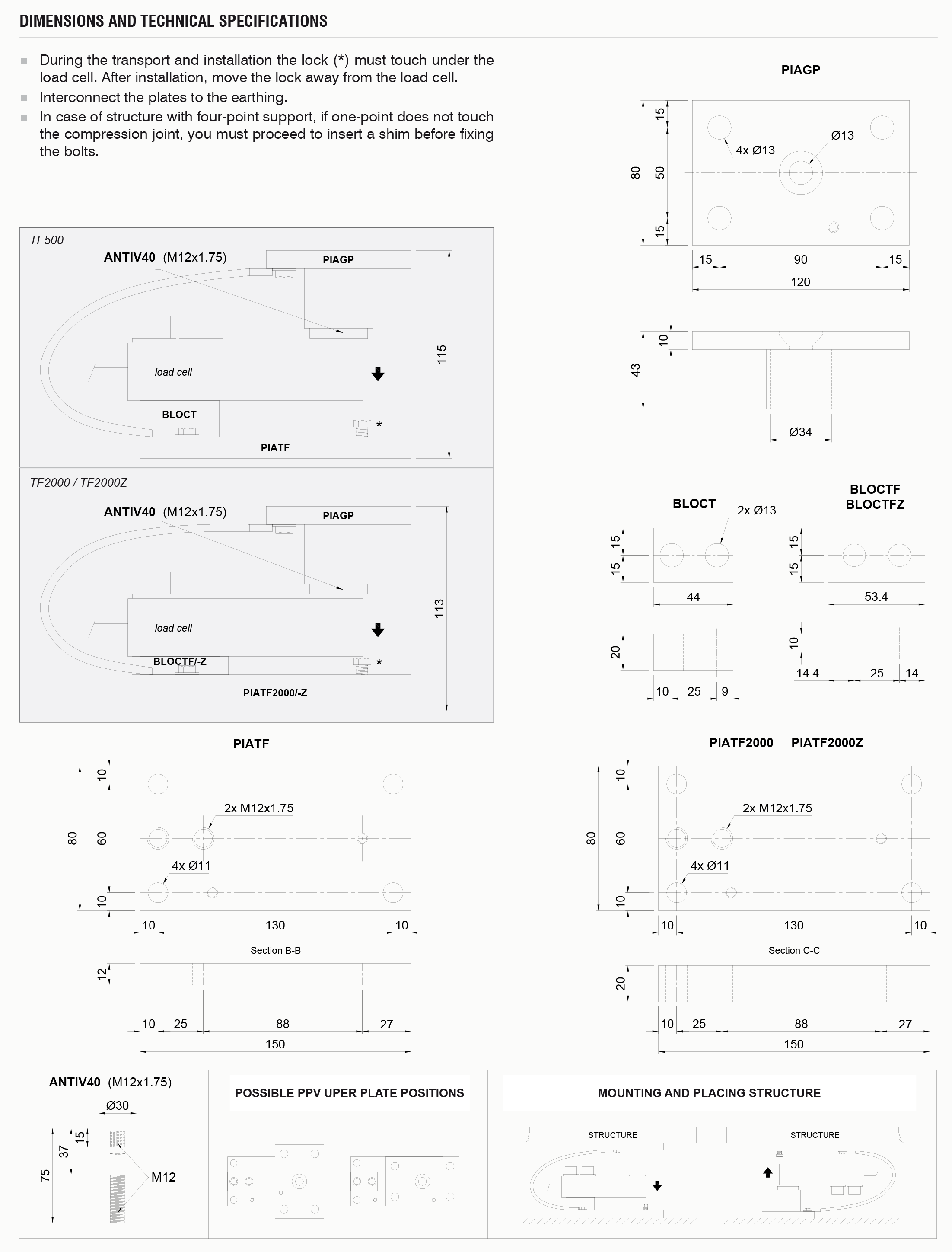 Mounting kits constructed of AISI 304 stainless steel (*2000Z : version with PIATF2000Z and BLOCTFZ constructed of galvanized steel); designed for tanks, hoppers, platforms, etc..; provided with a compression joint in AISI 304 stainless steel and rubber, to compensate for misalignment of the support plates. Max static load 500/2000 kg.gP0廣州南創(chuàng)電子科技有限公司