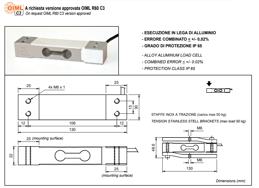 意大利 laumas ALL-50KG稱重傳感器特點:tLS廣州南創(chuàng)電子科技有限公司