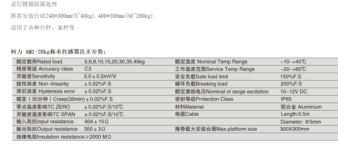 寧波柯力稱(chēng)重傳感器AMI-8Kg AMI-20kg