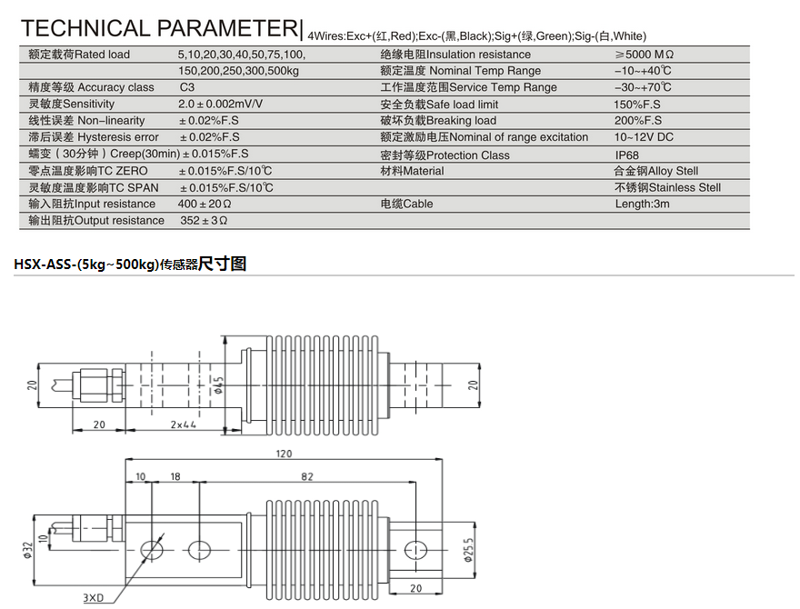 寧波柯力稱重傳感器HSX-40kg產(chǎn)品技術(shù)參數(shù)及尺寸圖:mcA廣州南創(chuàng)電子科技有限公司