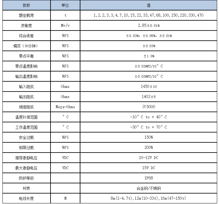 寧波柯力稱重傳感器在同一載荷點(diǎn)上加載和卸載輸出量的最大差值對(duì)額定輸出值的百分比。重復(fù)性誤差在相同的環(huán)境條件下,對(duì)傳感器反復(fù)加荷到額定載荷并卸載。加荷過程中同一負(fù)荷點(diǎn)上輸出值的最大差值對(duì)額定輸出的百分比。蠕變?cè)谪?fù)荷不變(一般取為額定載荷),其它測(cè)試條件也保持不變的情形下,稱重傳感器輸出隨時(shí)間的變化量對(duì)額定輸出的百分比。輸出阻抗電源激勵(lì)輸入端短路,傳感器未加載荷時(shí),從信號(hào)輸出端測(cè)得的阻抗。溫度補(bǔ)償范圍在此溫度范圍內(nèi),傳感器的額定輸出和零平衡均經(jīng)過嚴(yán)密補(bǔ)償,從而不會(huì)超出規(guī)定的范圍。零點(diǎn)溫度影響環(huán)境溫度的變化引起的零平衡變化。一般以溫度每變化10K時(shí),引起的零平衡變化量對(duì)額定輸出的百分比來表示。gku廣州南創(chuàng)電子科技有限公司