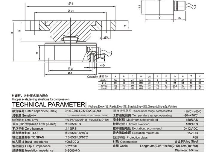 YBSC-A稱重傳感器參數(shù):QTU廣州南創(chuàng)電子科技有限公司