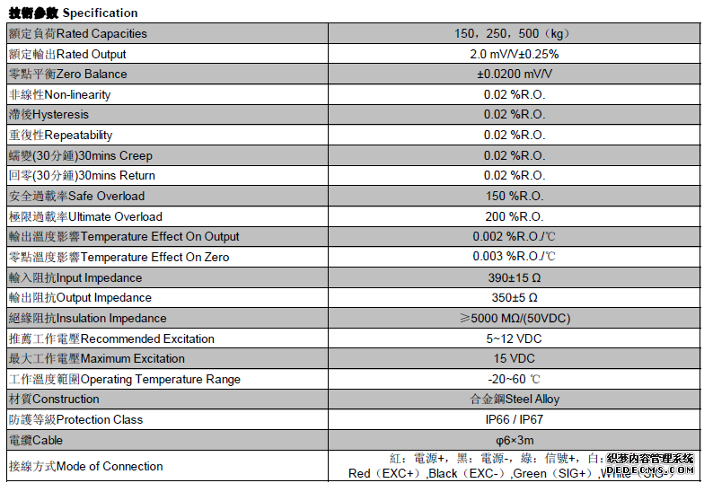 額定輸出; 2.0 mV/V±0.25%EkJ廣州南創(chuàng)電子科技有限公司