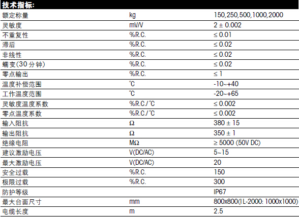 梅特勒托利多IL系列稱(chēng)重傳感器所有量程如下:rgk廣州南創(chuàng)電子科技有限公司