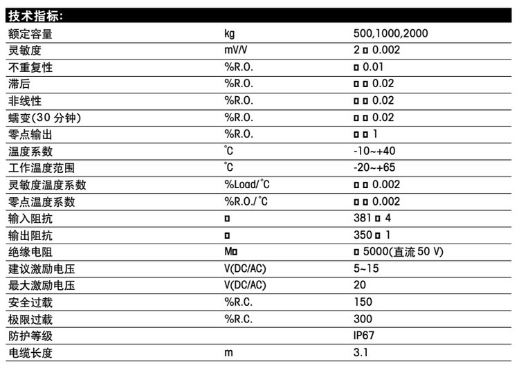 METTLER TOLEDO稱重傳感器SBC-2000kg技術(shù)參數(shù):8ad廣州南創(chuàng)電子科技有限公司