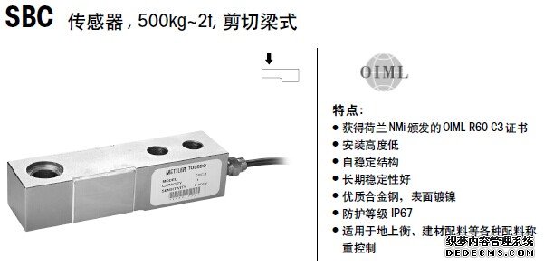 梅特勒托利多SBC系列能滿足500kg到2t的測(cè)量范圍,采用17-4PH不銹鋼制作,電子膠密封,防油,防水和抗腐蝕性氣體及介質(zhì),稱重傳感器SBC-1000kg可用于各種環(huán)境雙剪切梁結(jié)構(gòu)設(shè)計(jì),適用于電子汽車衡,軌道衡,料斗秤及其他電子衡器。MLe廣州南創(chuàng)電子科技有限公司