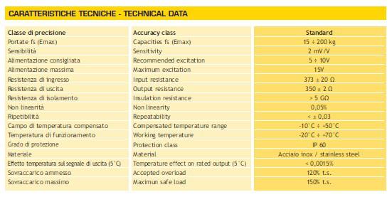 意大利N.B.C Mod EC稱重傳感器技術參數(shù):