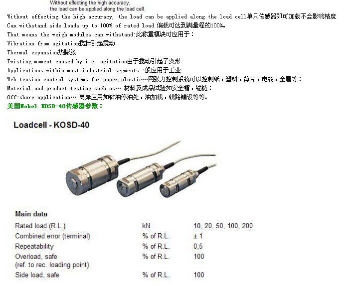 產(chǎn)品名稱:Vishay Nobel稱重傳感器KOSD-40l7A廣州南創(chuàng)電子科技有限公司