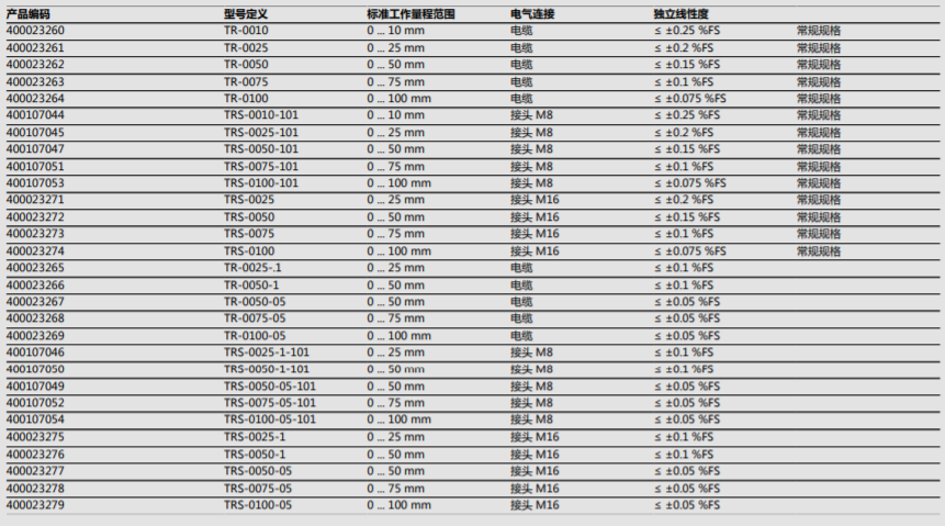 德國Novotechnik諾沃泰克位移傳感器TRS-0100主要特點:Ynt廣州南創(chuàng)電子科技有限公司
