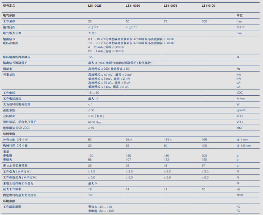 德國Novotechnik LS1系列直線位移傳感器產(chǎn)品特點:5ej廣州南創(chuàng)電子科技有限公司