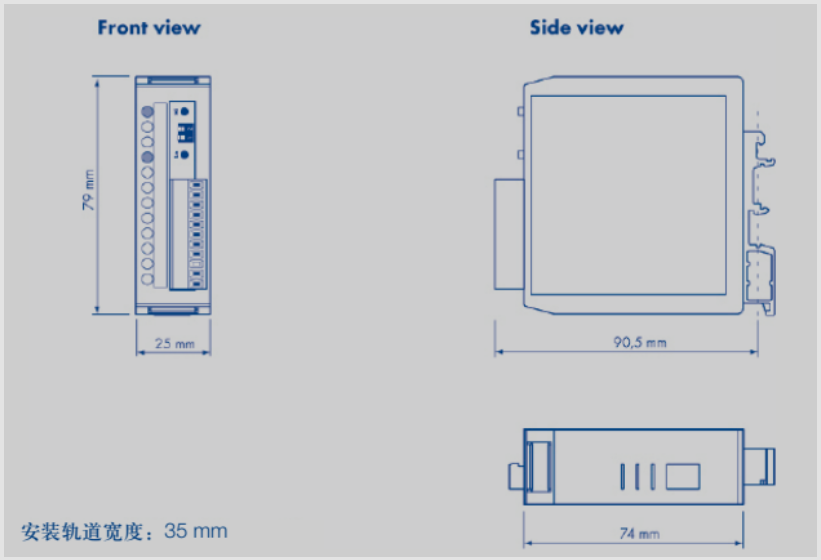 標準導軌固定安裝,符合 DIN EN 50022 標準hrE廣州南創(chuàng)電子科技有限公司