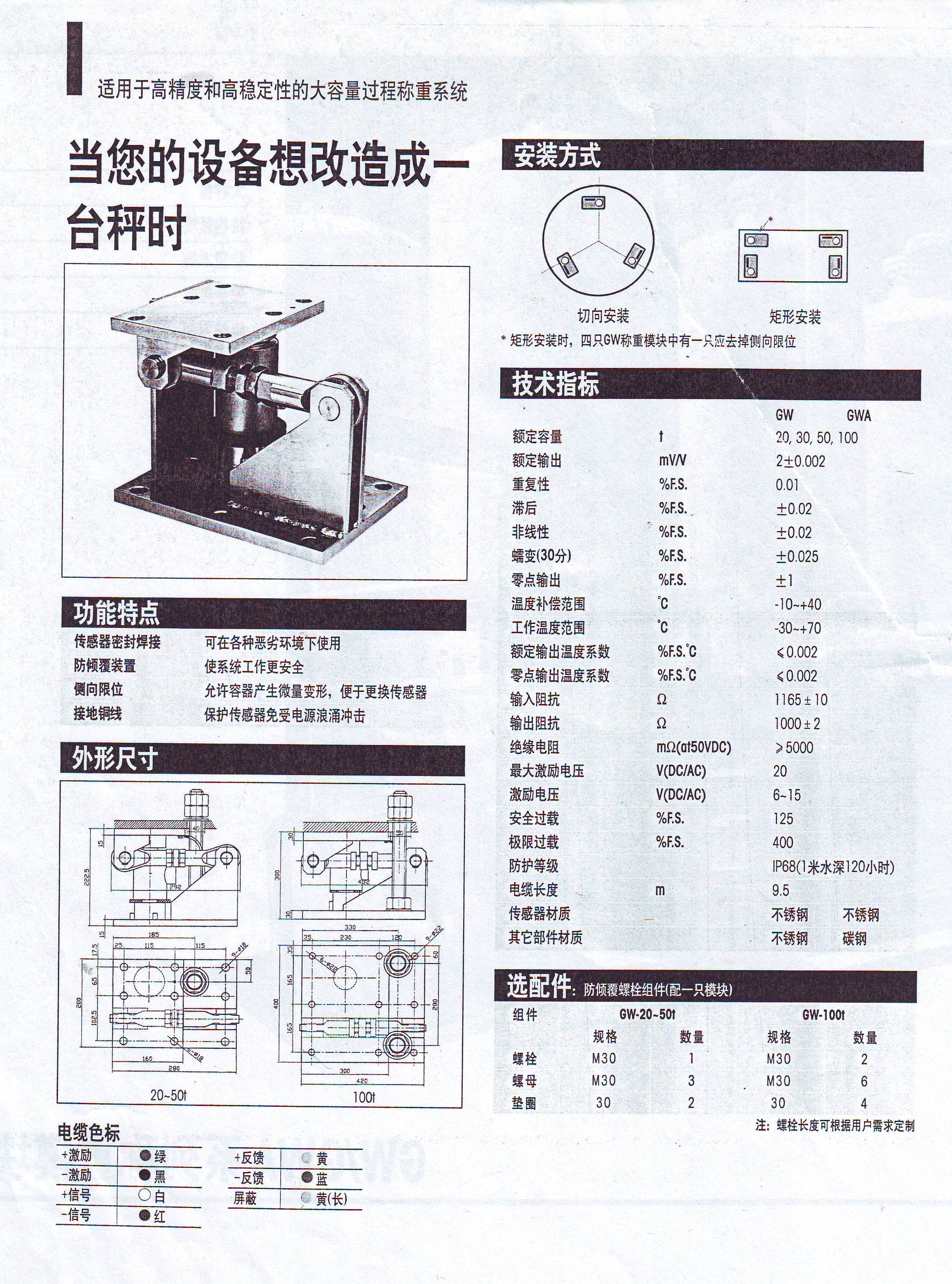 GWA-200 GWA稱重模塊,容量200t,,20M電纜0Y9廣州南創(chuàng)電子科技有限公司