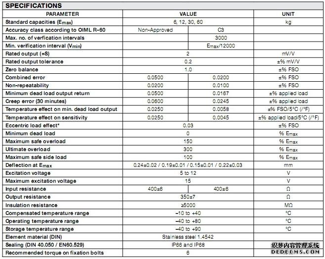 84150: DEB HPS-12kg-40 ft RTI 3mv/v 700 Ohm WW NTEP IIIL 10 M FM SST qD8廣州南創(chuàng)電子科技有限公司