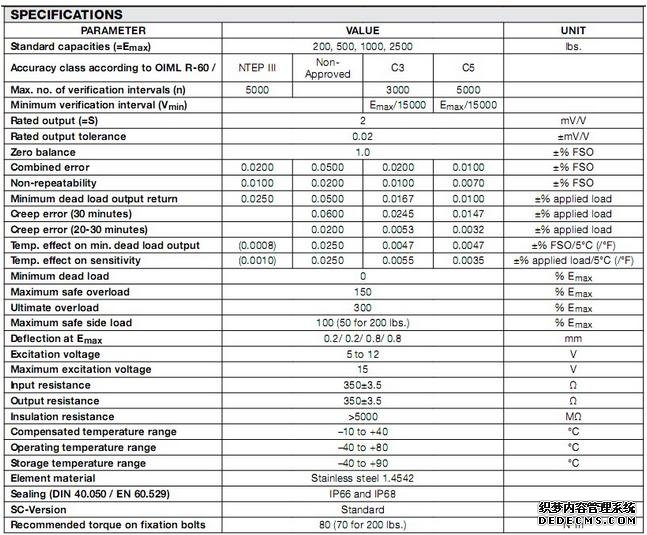 33554:  65083S-4k-5100 4000lb 20ft SENTRS 2mV/V 350 OHM NTEP Class III 5m  HS WS IP67PfF廣州南創(chuàng)電子科技有限公司