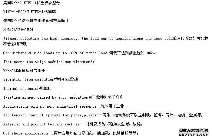 美國Nobel KIMD-M-500KN稱重傳感器模塊參數(shù):ocm廣州南創(chuàng)電子科技有限公司