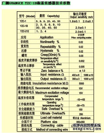 YZC-1B/2稱重傳感器技術(shù)參數(shù):whT廣州南創(chuàng)電子科技有限公司