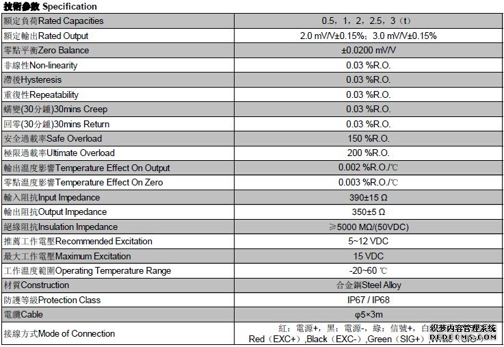 額定輸出Rated Output 2.0 mV/V±0.15%;3.0 mV/V±0.15%H0w廣州南創(chuàng)電子科技有限公司