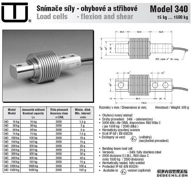西班牙尤梯爾稱重傳感器MOD340-50kg技術(shù)參數(shù):I5f廣州南創(chuàng)電子科技有限公司