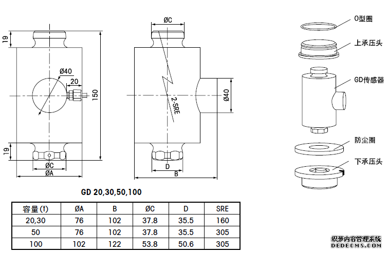 GD-100T 搖柱式稱重傳感器,容量100T,13M電纜1vi廣州南創(chuàng)電子科技有限公司