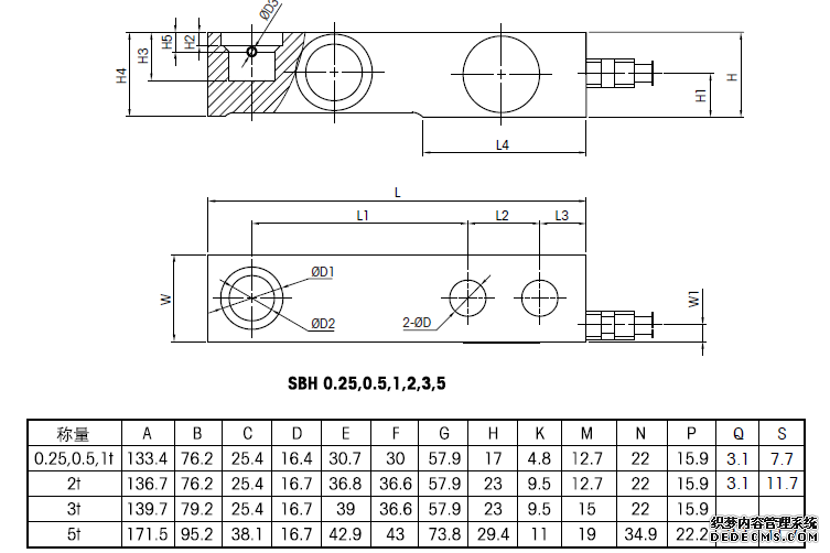 SBH-0.25 彎曲梁稱重傳感器,稱重容量0.25T,承載孔為盲孔,5M電纜Tnf廣州南創(chuàng)電子科技有限公司