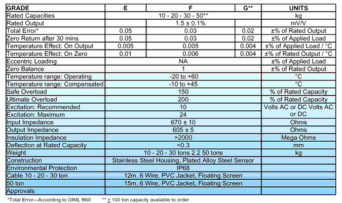 美國特迪亞tedea 120稱重傳感器系列所有量程如下:Mbz廣州南創(chuàng)電子科技有限公司