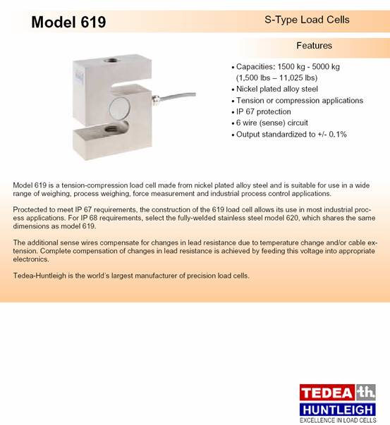 美國Tedea-Huntleigh 619-2000kg稱重傳感器,特迪亞619-2T,TEDEA 619-3T傳感器S型稱重傳感器所有型號:07Q廣州南創(chuàng)電子科技有限公司