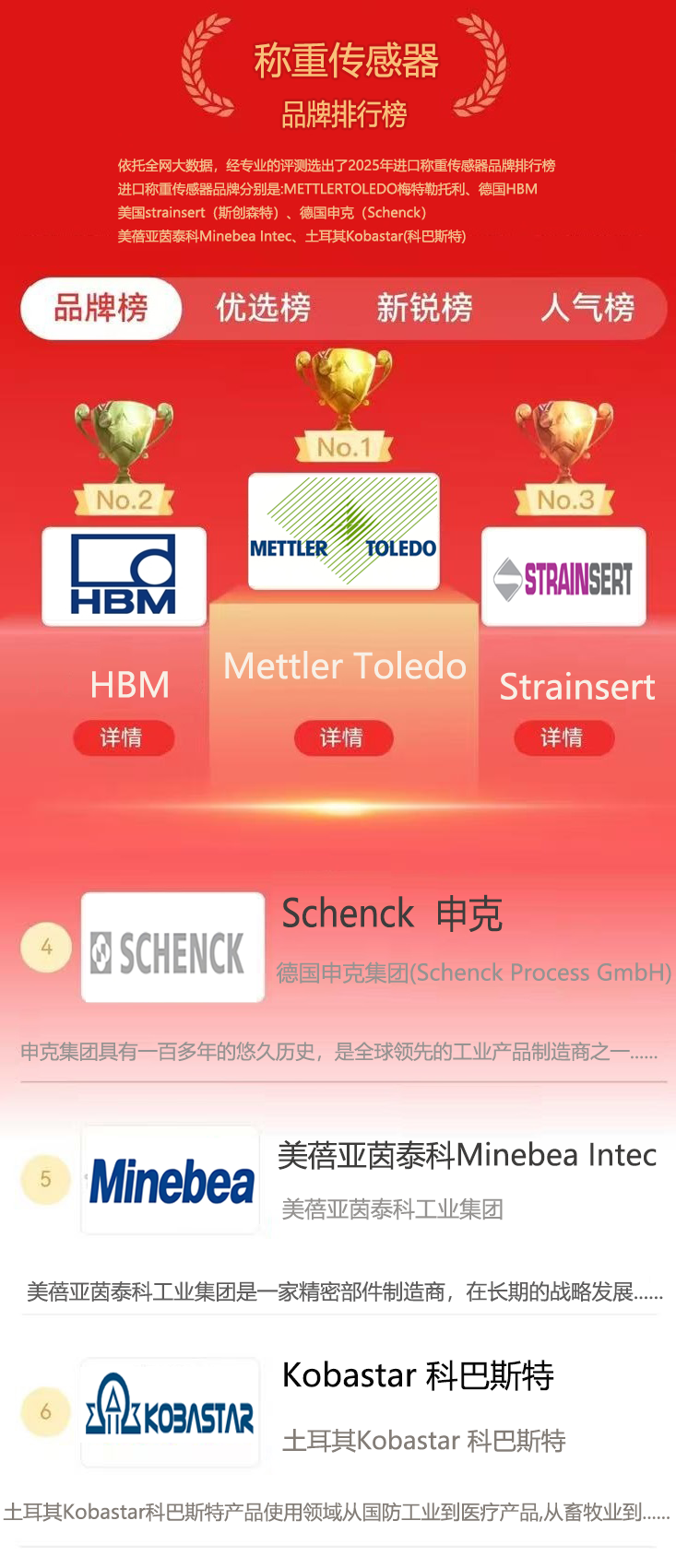 根據(jù)數(shù)據(jù)研究部門通過收集整理稱重傳感器品牌資料,基于大數(shù)據(jù)統(tǒng)計(jì)、人為根據(jù)稱重傳感器市場及參數(shù)條件變化的分析研究專業(yè)測評而得出的稱重傳感器品牌排行榜,是大數(shù)據(jù)、云計(jì)算、數(shù)據(jù)統(tǒng)計(jì)真實(shí)客觀呈現(xiàn)的排名結(jié)果。  9gd廣州南創(chuàng)電子科技有限公司