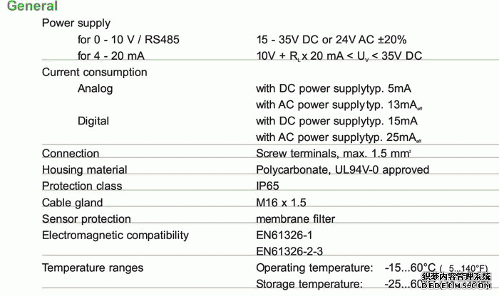 奧地利E+E EE160系列溫濕度變送器技術參數圖:57g廣州南創(chuàng)電子科技有限公司