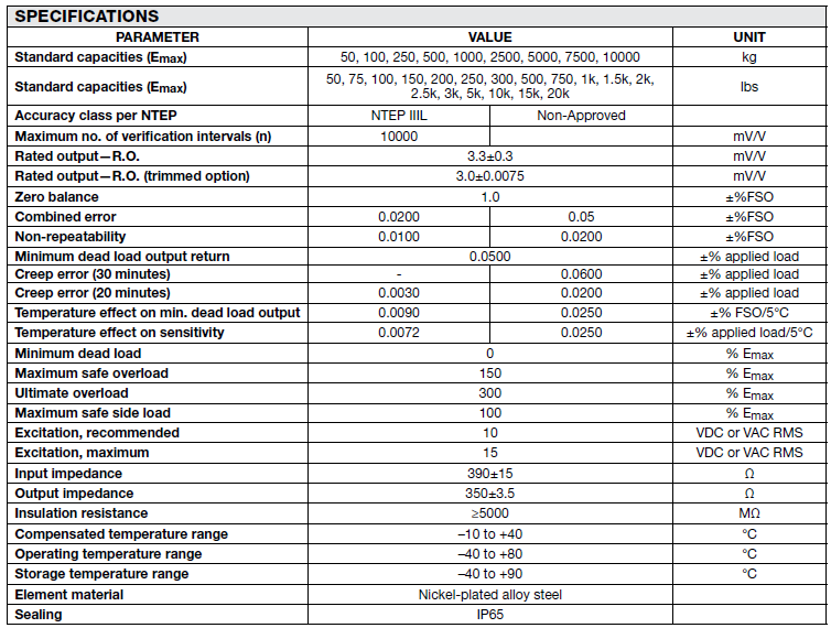21606:  5223-B10-65 K-40P1 65,000 lb 40ft RTI 3mV/V 700 OHM WW NTEP IIIL 10 M FM WS IP67  LUz廣州南創(chuàng)電子科技有限公司