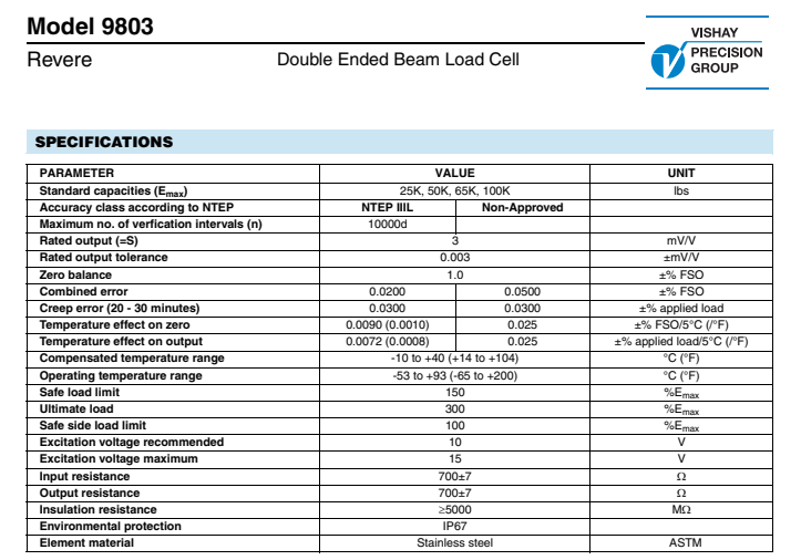 美國(guó)vishay Revere稱重傳感器9803-65klbs產(chǎn)品技術(shù)參數(shù):BZ4廣州南創(chuàng)電子科技有限公司