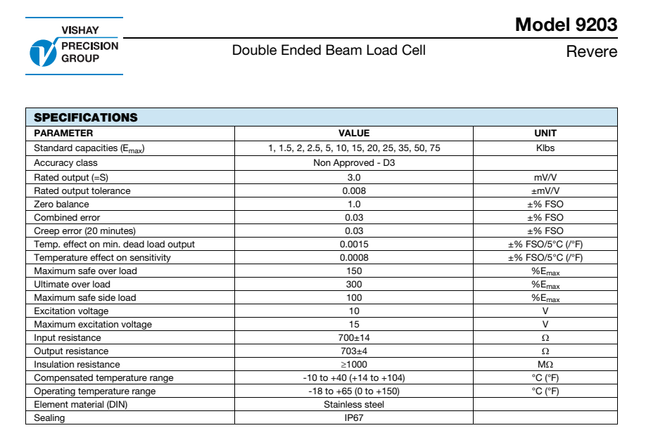 美國威世Revere 9203-25klbs稱重傳感器系列量程:oab廣州南創(chuàng)電子科技有限公司