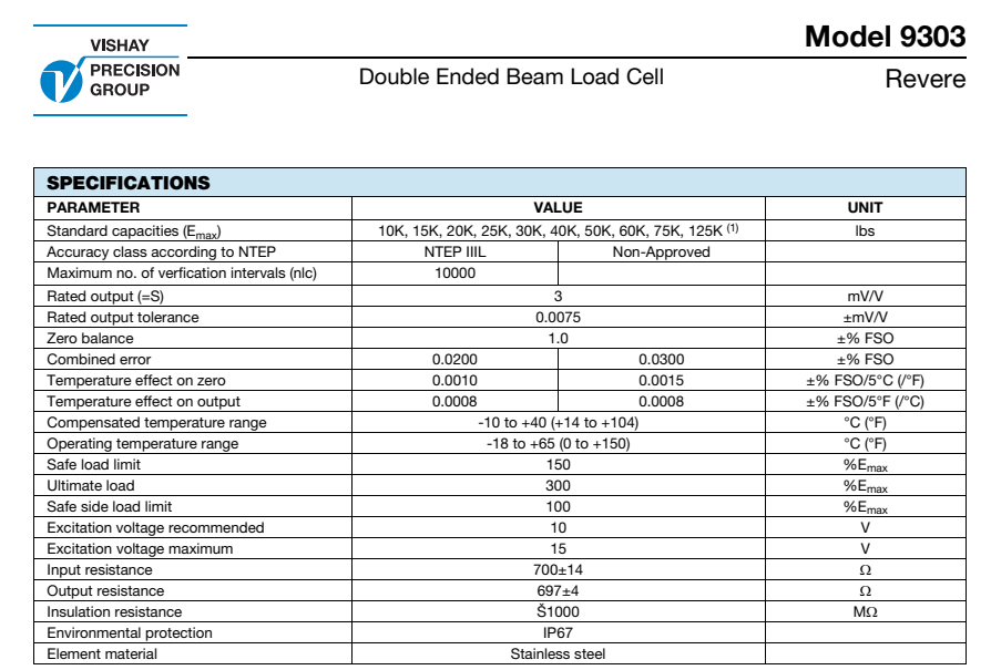 美國vishay Revere稱重傳感器9303-25klbs產(chǎn)品技術(shù)參數(shù):lkG廣州南創(chuàng)電子科技有限公司
