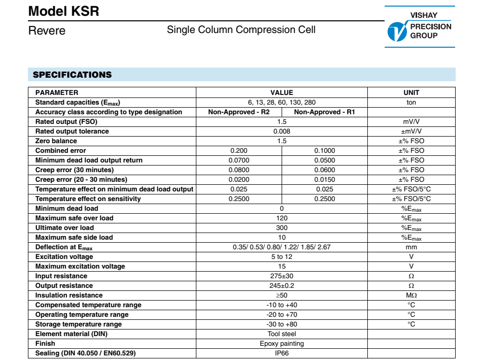 美國(guó)vishay Revere稱重傳感器KSR-6t產(chǎn)品技術(shù)參數(shù):xXu廣州南創(chuàng)電子科技有限公司