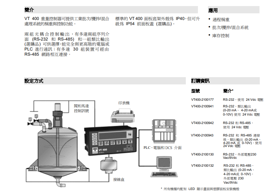 稱重儀表VT100 VT300 VT400-P-2-0-3-0-E VT400 VT450 WjM廣州南創(chuàng)電子科技有限公司