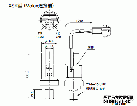 日本鷺宮XSK系列壓力傳感器產(chǎn)品尺寸參考圖:RWw廣州南創(chuàng)電子科技有限公司