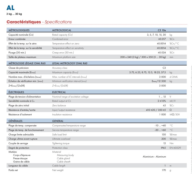 2. 法國Scaime稱重傳感器AL系列精度等級:C3