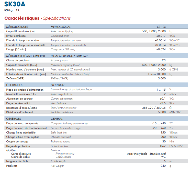 SK30A-500KG稱重傳感器法國(guó)Scaime