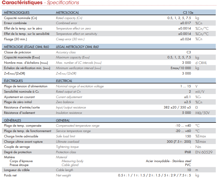 法國Scaime稱重傳感器ZA30X-500KG產(chǎn)品參數(shù)圖:xaB廣州南創(chuàng)電子科技有限公司