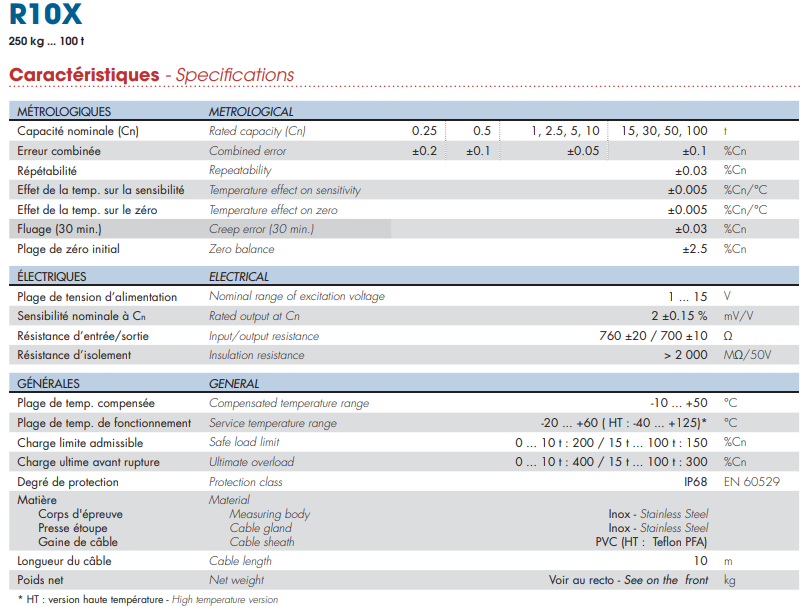 R10X-250KG稱重傳感器法國Scaime