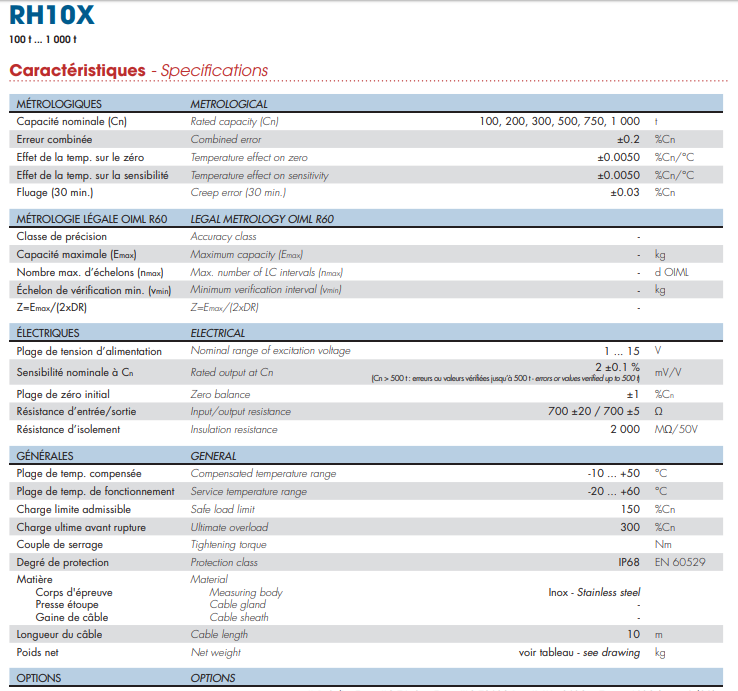 法國世感Scaime稱重傳感器RH10X-100T產品參數圖:5jw廣州南創(chuàng)電子科技有限公司
