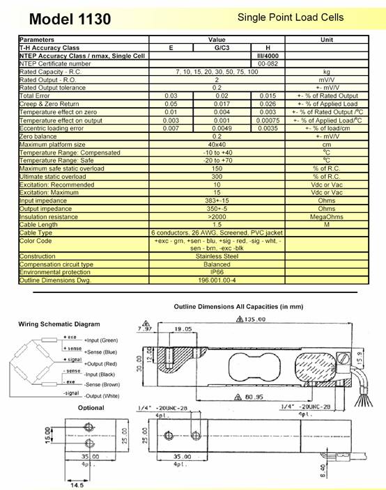 1130-30kg 稱重傳感器tedea 1130-15KG 1130-7KG傳感器技術(shù)參數(shù)圖:ehk廣州南創(chuàng)電子科技有限公司