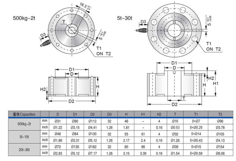 量程范圍:500kg、1T、2T、5T、10T、20T、25T、30T9R9廣州南創(chuàng)電子科技有限公司