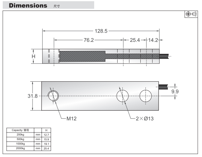 美國(guó)傳力SBST-200kg稱重傳感器產(chǎn)品尺寸圖:C7g廣州南創(chuàng)電子科技有限公司
