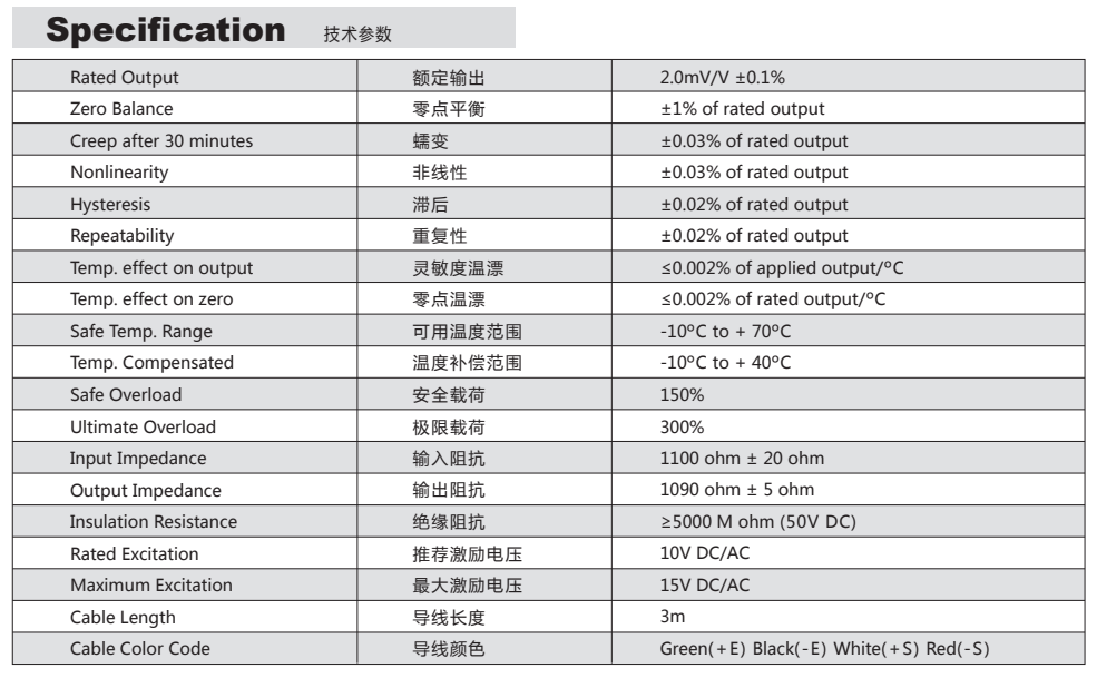 1.1 TA-100kg稱重傳感器Transcell根據(jù)使用環(huán)境,對稱重傳感器的保護等級有相應(yīng)的要求。電子秤大多在室內(nèi)使用,環(huán)境良好,所以可采用密封的盆栽膠水。對于室外使用或惡劣環(huán)境(如灰塵),應(yīng)采用全密封焊接產(chǎn)品,保護等級不低于 IP67。如果環(huán)境潮濕或經(jīng)常冒煙等,應(yīng)使用全密封焊接版本的不銹鋼,并保護 IP68,以確保長期使用。如果環(huán)境潮濕或經(jīng)常冒煙等,應(yīng)使用完全密封的不銹鋼焊接版本,保護程度需要 IP68 以確保長期使用。Ut0廣州南創(chuàng)電子科技有限公司