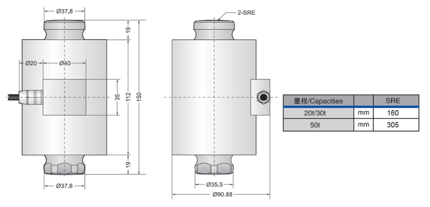 美國(guó)傳力CD-5t稱重傳感器產(chǎn)品尺寸圖:xUJ廣州南創(chuàng)電子科技有限公司