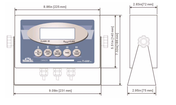 美國傳力TranscelTI-500SL稱重顯示儀表尺寸圖:jPP廣州南創(chuàng)電子科技有限公司