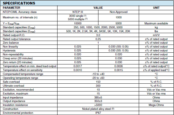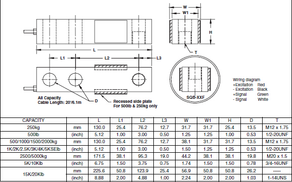美國世銓Celtron SQB系列稱重傳感器所有量程如下: K3E廣州南創(chuàng)電子科技有限公司