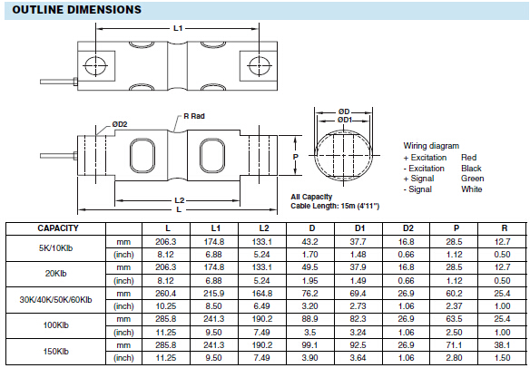 1Ea廣州南創(chuàng)電子科技有限公司美國世銓Celtron csb系列稱重傳感器所有量程如下: 1Ea廣州南創(chuàng)電子科技有限公司csb-5klb稱重傳感器