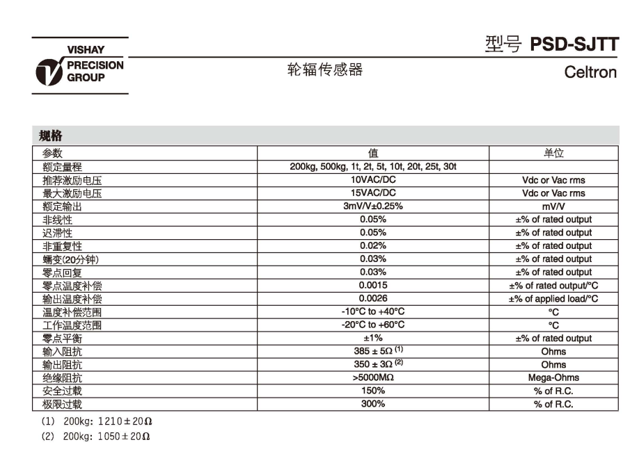 美國(guó)vishay celtron稱重傳感器PSD-200kgSJTT產(chǎn)品技術(shù)參數(shù):Ymf廣州南創(chuàng)電子科技有限公司